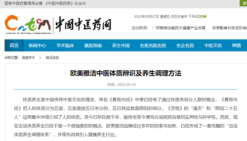 近日,我司古法体质养生和七方熏灸疗法两个特色项目,被中国中医药网收录推荐。作为中医药行业唯一的国家级报纸,《中国中医药报》所创办的中国中医药网是目前国内最专业,最权威的中医药宣传网站之一,不仅是医疗行业的大型专业媒体,同时也是中医药国际交流合作平台。 欧美雅洁作为国内健康养生行业的典范品牌,推广中医养生文化多年,本次被收录的古法体质养生和七方熏灸疗法两个项目,都是立足于传统中医的健康养生理论,古为今用,通过不断探索与创新而研发出来的更适宜当代人的健康调理项目,能被中国中医药网收录并作为突出临证经验进行推荐,充分说明了行业权威媒体对我司特色项目的专业性、独特性、有效性的充分认可。 欧美雅洁的养生哲学就是立足于传统中医“治未病”的思想,归纳融合了“天人合一”的顺时养生 ;“淡泊清静”的精神养生 ;“谨和五味”的饮食养生; “气血以流通为贵”的运动养生 以及“仁者寿”的道德养生等中国传统养生观念,结合现代医学理念,形成了一整套科学的养生调理体系。在这个养生调理体系下,无论是古法体质养生,还是七方熏灸疗法,都是以不同体质、不同人群、不同病机来辩证调理,将每个人都当成完整而独立的个体,综合考虑每种亚健康状态发生的一般规律和每个人体质的特殊性,因人而异地实施系统的调理方案,会有专用的体质养生产品和熏灸散、搭配专业养生调理仪器,能有效的改善顾客体质状态,促进身体的阴阳平和,恢复健康身体。 欧美雅洁深耕健康养生事业多年,作为国内健康养生行业的头部品牌,我司始终立足于行业前沿,专注干技术,项目和产品的开发及创新工作,以提升企业的综合实力。我们将保持初心,秉持匠心,持续创新,致力于为广大消费者提供更加优质的产品和更加专业的服务,能在传承中医养生文化的同时,为更多的人带去健康。